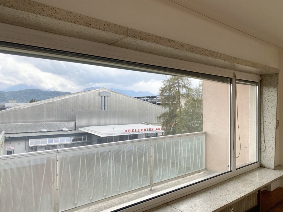 Großzügig geschnittene Dachgeschosswohnung mit 10 m² Süd-Loggia, zentrale Lage vis a vis Heidi-Horten-Arena, 3. Stock ohne Lift, 2 Schlafzimmer, Esszimmer, riesiges Wohnzimmer, tolle Küche, großer Abstellraum und großes Kellerabteil; Top gepflegter Gesamtzustand, bezugsfertig