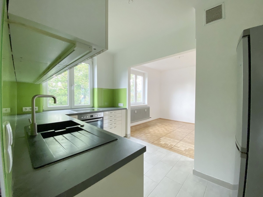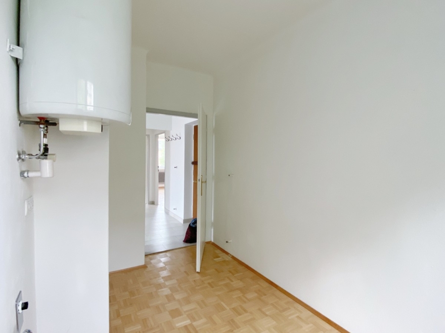 Die Wohnung verfügt über moderne, heute übliche Ausstattung. Es gibt toll gepflegte Parkettböden, eine Einbauküche mit allen heute üblichen Geräten inklusive Stand-Alone-Kühlschrank sowie komplett erneuertes Bad und WC. Im großen Abstellraum befindet sich der Anschluss für die Waschmaschine.